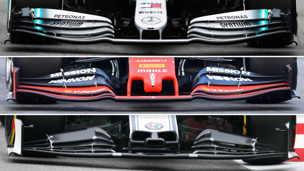 Aunque la solución inicial de Alfa (y teniendo en cuenta que todas estas alas son simplemente las primeras iteraciones y pueden cambiar considerablemente durante las pruebas) parece ser la opción más extrema para favorecer el lavado de los neumáticos sobre la fuerza descendente del alerón delantero, hay un énfasis diferente entre cada equipo.